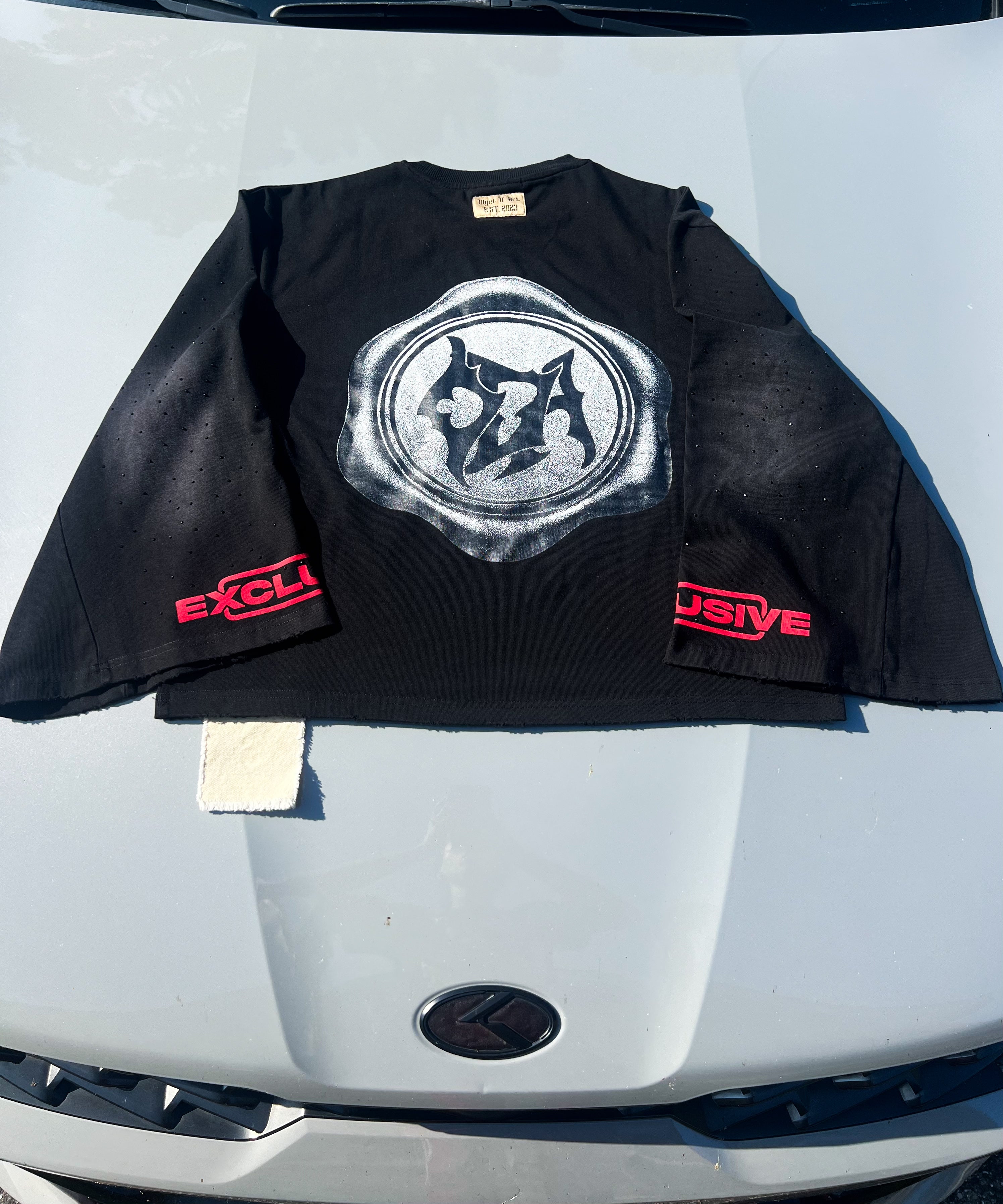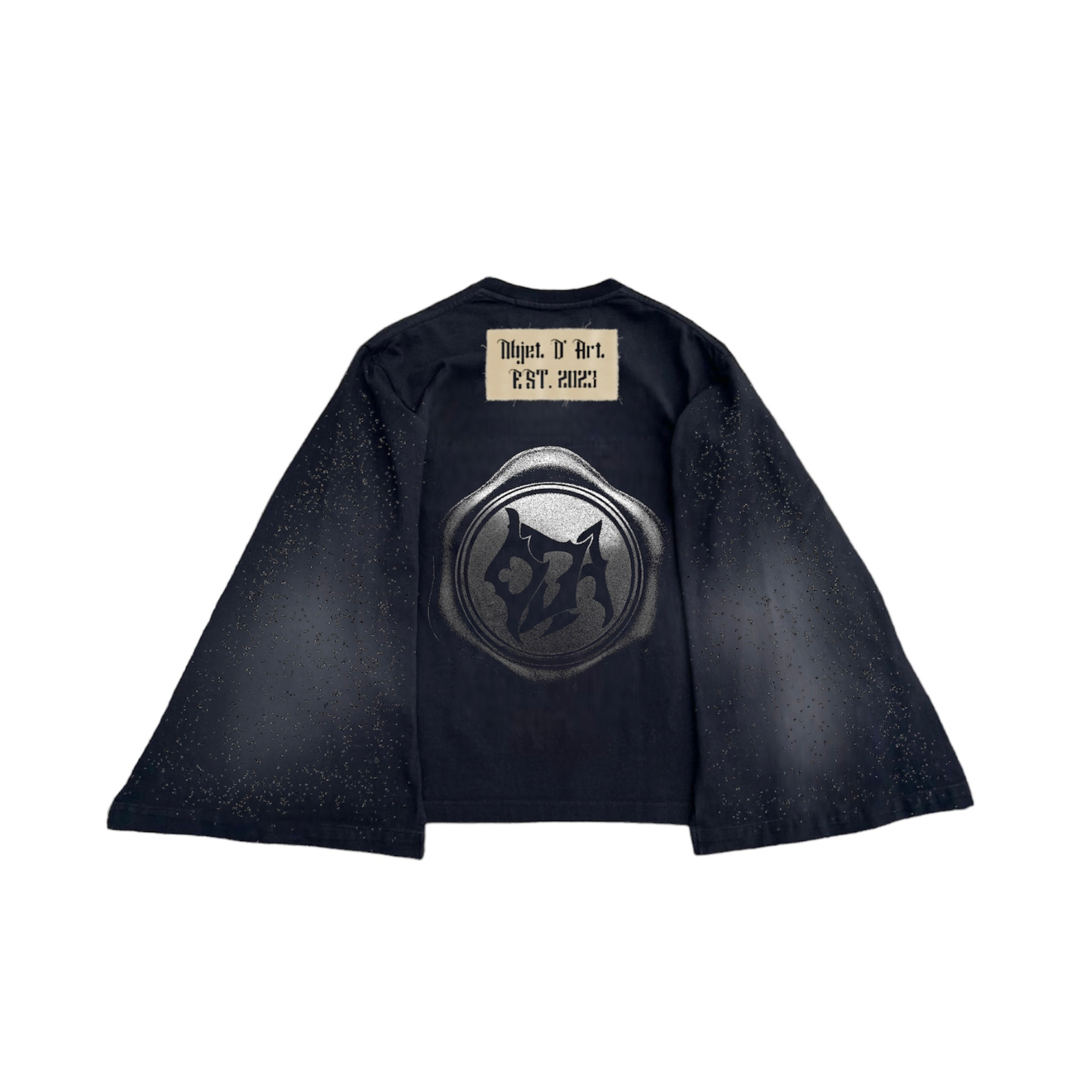 Stamp T-Shirt Oversized in washed black with bold front and back graphics with detailed sleeve accents